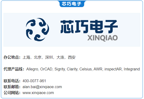 上海芯巧电子科技有限公司是国内领先的电子、电气设计自动化和信息化管理系统方案与服务提供商,客户覆盖半导体、消费电子、通讯、汽车电子、工业自动化、教育科研等众多领域,业务涉及Cadence PCB及仿真全系列软件代理,PCB软件二次开发,电子元器件建库,PCB Layout 服务,PCB 加工装配等,拥有专业的市场销售、软件服务支持和软件定制开发团队。